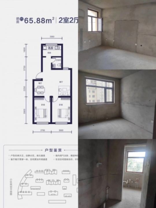 出售毛坯华申尚河园2室1厅1卫1厨65平23万,好楼层,学区未用