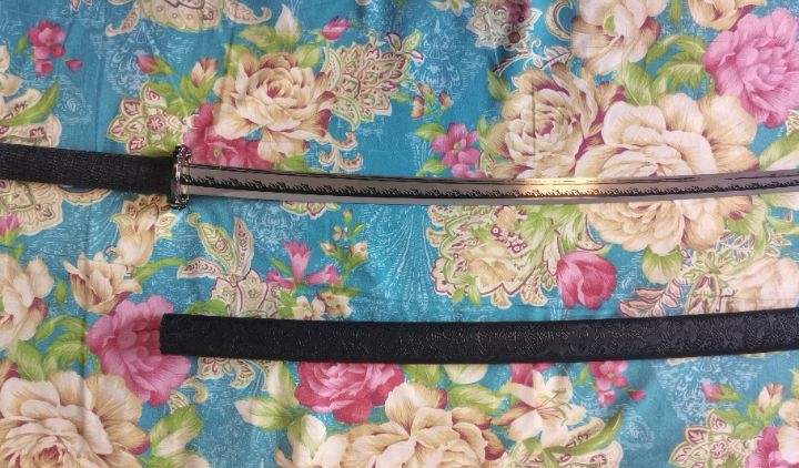 低价出售九成新武士刀,未开刃,车载摆件工艺品,全长102cm,刃长67cm,柄长25cm,重约1kg。有意者直接打电话
